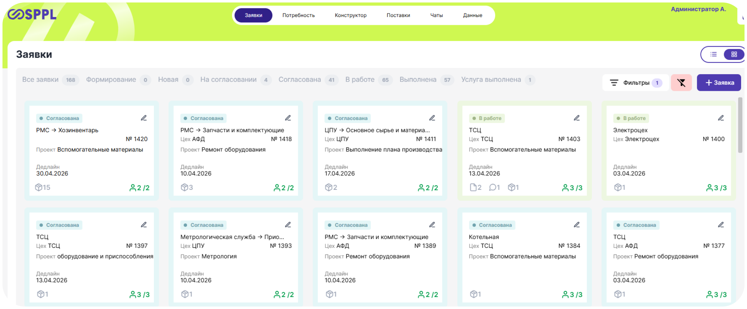 Полный цикл закупочной деятельности: от автоматического расчёта потребности через MRP до формирования лотов, отправки поставщикам и контроля поставок.